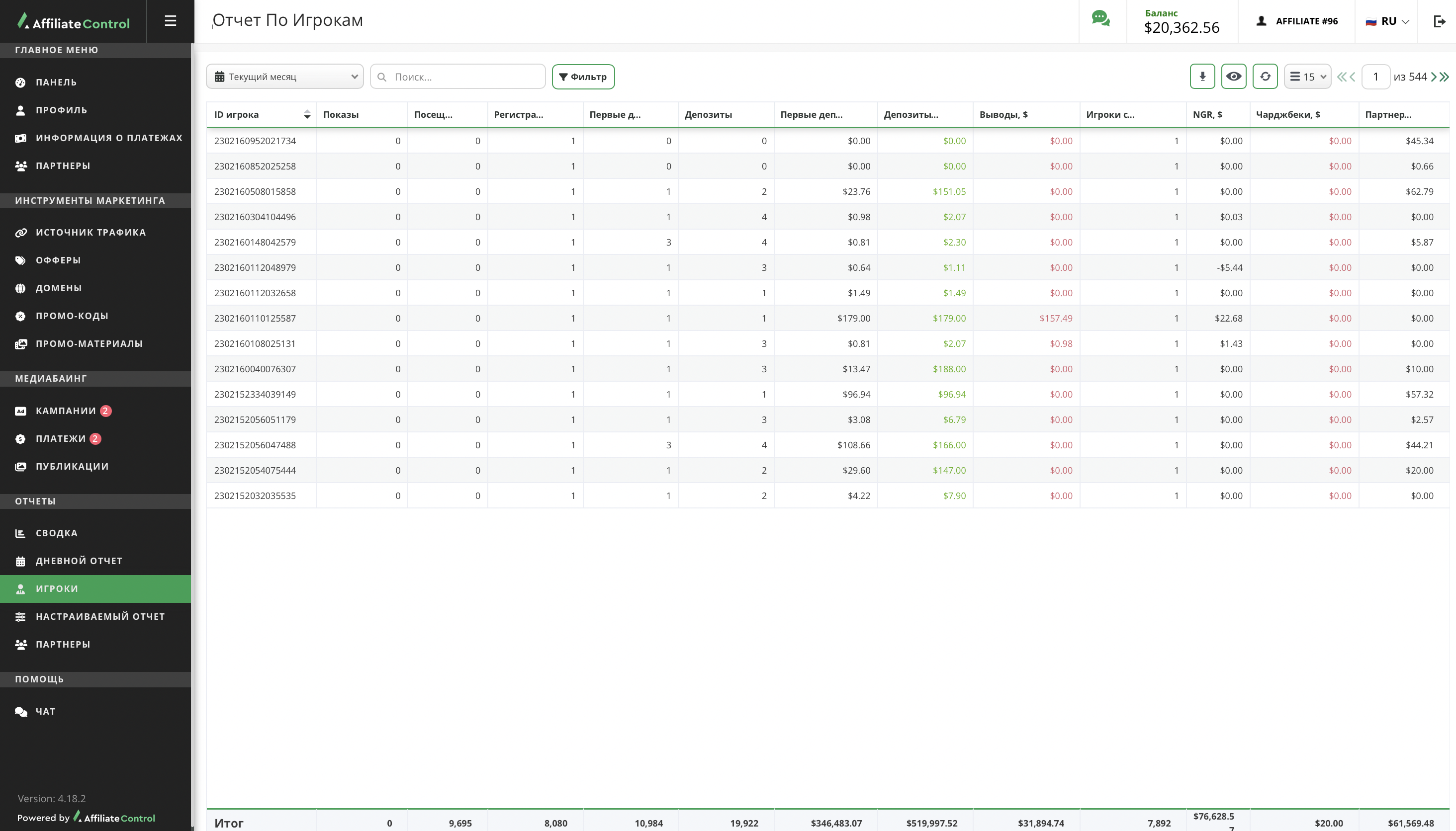 Игроки Раздел "Игроки" по содержанию аналогичен подразделу "Дневной отчет", но формируется по идентификатору игрока. Игроки