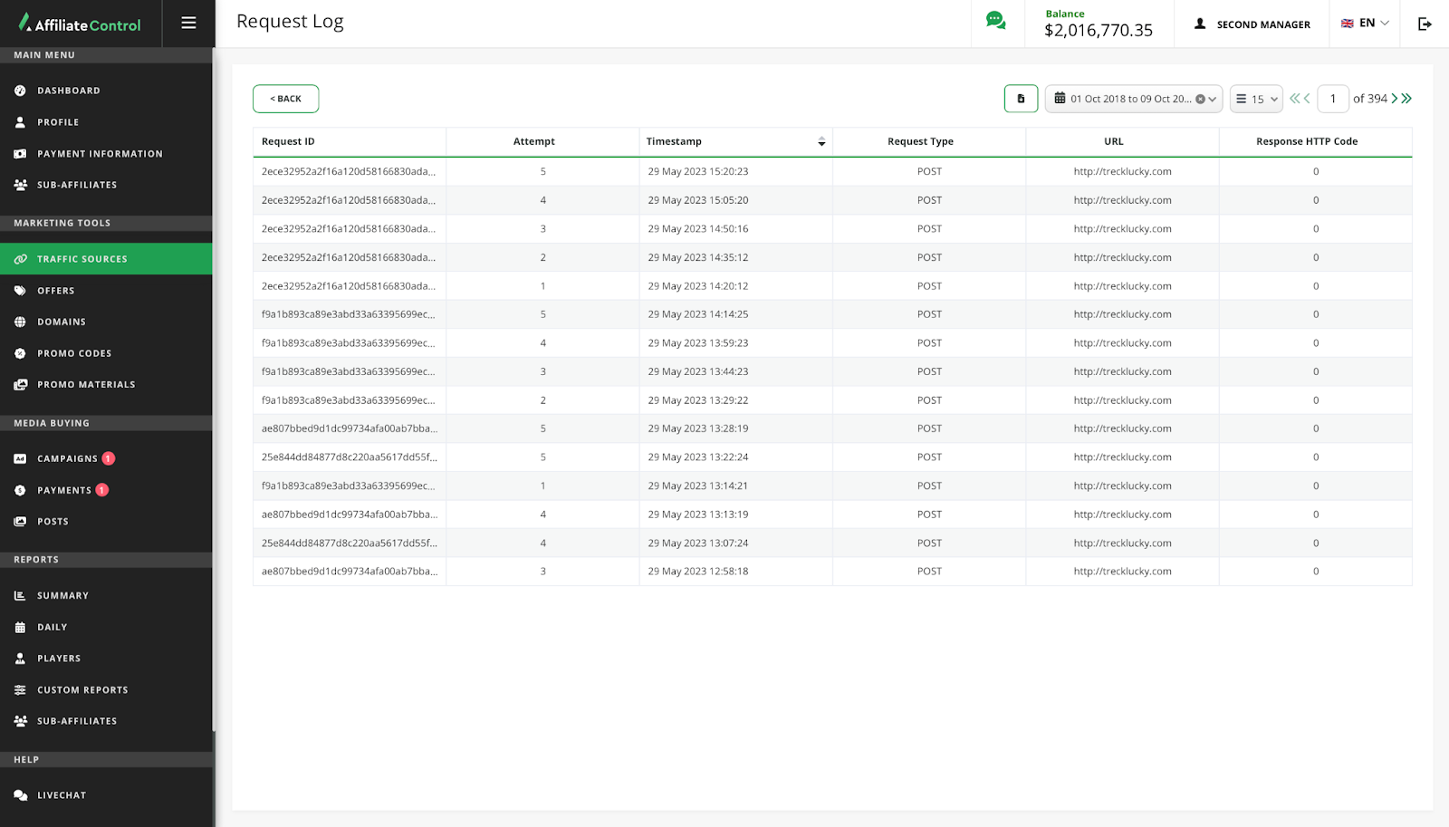 - Chargebacks - chargebacks, sent when the payment of the CPA commission for the player is canceled.